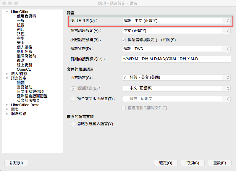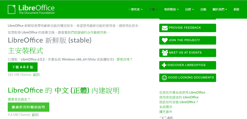 如果覺得英文版還是很有距離,阿湯後來找到 LibreOffice 新鮮版,裡面有內建繁體中文,就趕快下載來用了。