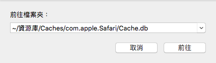 切換到「~/資源庫/Caches/」後面加上要前往的資料夾(如果沒有顯示就手動輸入),按前往。