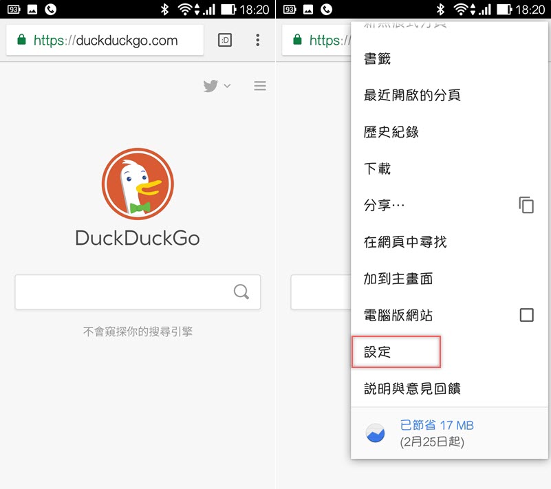 最後是更改搜尋引擎,先訪問你想要變更的那個網頁,點開右上角設定。
