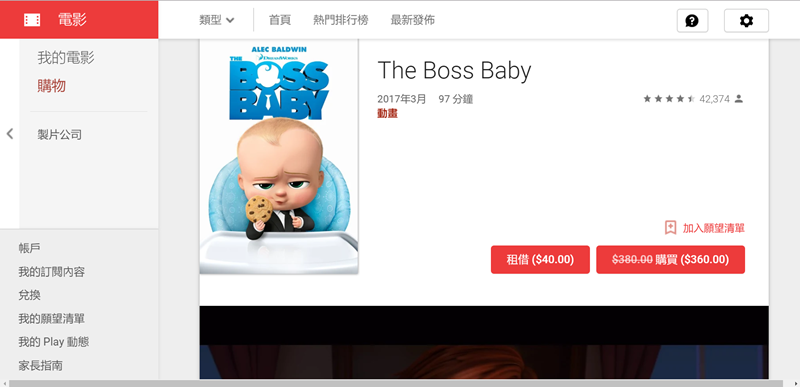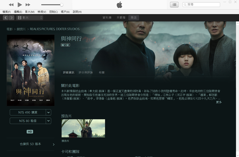 預設是以 HD 版本來計費,需要 SD 版要另外連結,也是可以用買的,其他像評論或劇情大概都有,但阿湯是不喜歡看太多介紹,免得踩雷。