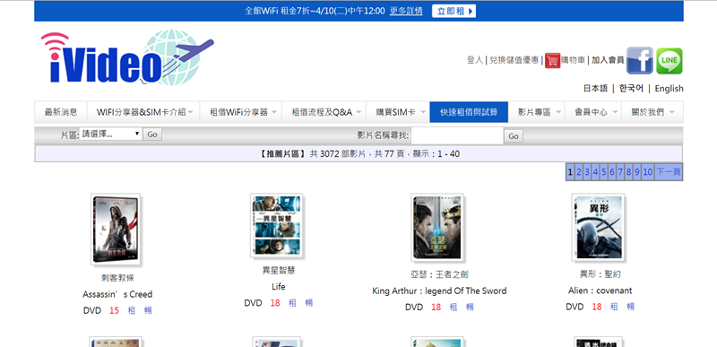 以租借各國 Wi-Fi 分享器為主,影片專區目前也有三千多部片子,包括各國電影及少數卡通,跟亞藝一樣採線上選片、付費,超商取片/還片機制,想租幾天自己決定,無實體店面。
