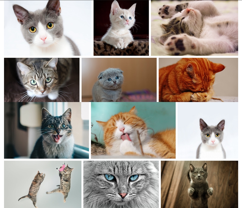 也可以直接往下瀏覽內容,各種大大小小、不同動作、表情的貓咪真的好療癒啊,也有常見的,像中間那張舔手手的黃貓阿湯就在其他地方看過,每張長寬比例也不同。