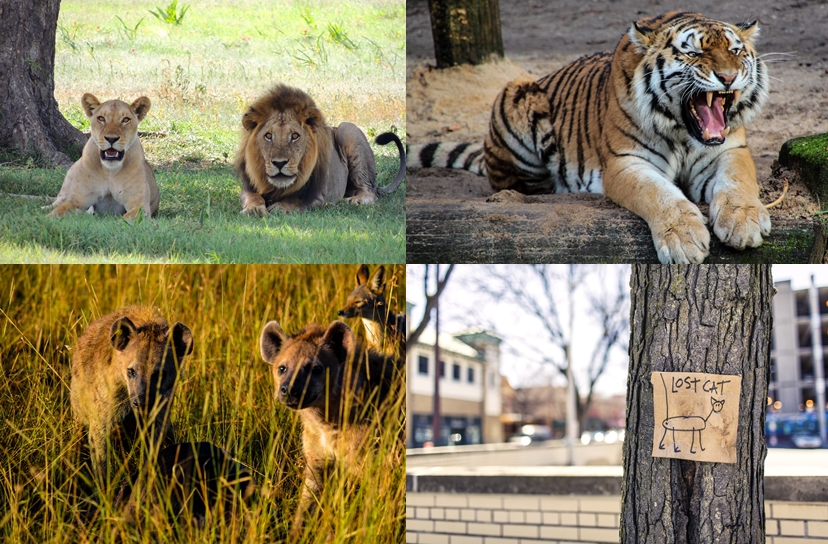 還有兩隻獅子、老虎,左下角是比較少見的鬃狗,連惡搞版的尋貓啟事都算,一起來收藏吧。
