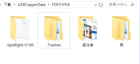 進入後除了 USB 內正常看得見的檔案,連平常不會顯示出來的垃圾都一併複製過去,才知道原來這些資料都還保存著。
