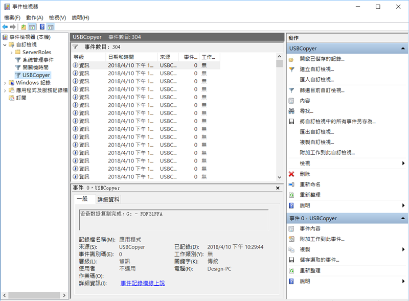 點查看日誌會進入事件檢視器,使用時間和進行的動作都會一一記錄在裡面。