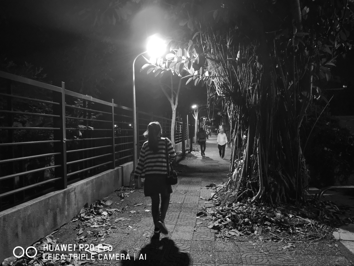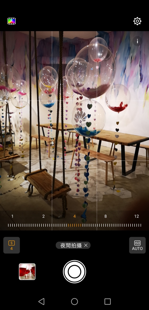 接下來阿湯特別先把夜間拍攝這模式拿出來講一下,在 Mate 10 之前要使用夜間拍攝模式是一定得上腳架的,否則手持再怎麼穩都不太可能撐過 2 秒,而這次的夜間拍攝模式最強的是可以讓你手持四秒拍攝照片都不會晃動,而且使用方式很簡單,切換到夜間拍攝模式後,秒數跟 ISO 值都選 Auto 自動即可,不需額外做什麼調整,P20 Pro 會自動辨識到你目前是採用手持拍攝或是上腳架,如果是手持的話會自動拍攝 4 秒並進行運算合成照片,如果是上腳架則是自動計最佳拍攝秒數。