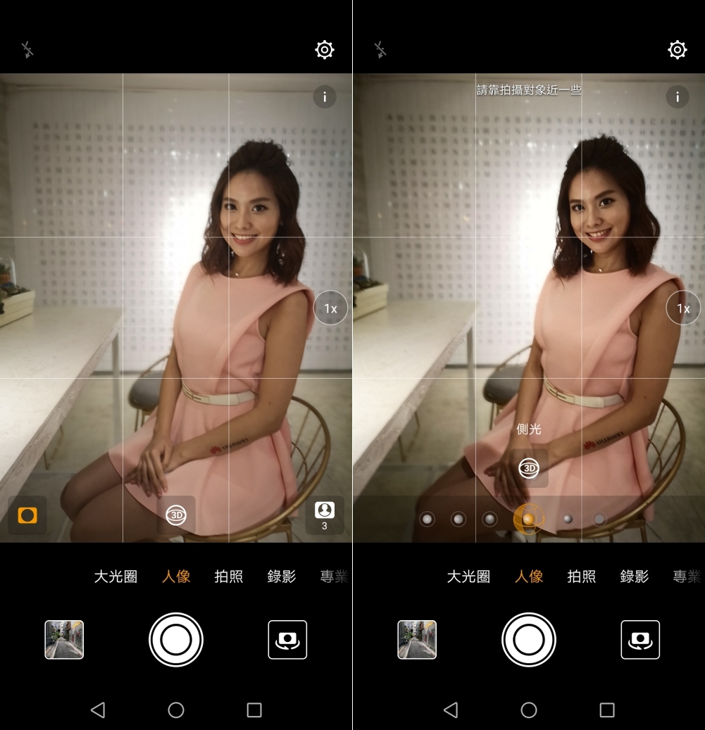 人像模式不論是主鏡頭或前鏡頭與先前一樣,有人像景深及美肌模式可以使用,而這次再加入的是「3D 環繞光效」,如果現場光源太過單一的話,你可以透過這功能來創造出不同的環境光感。