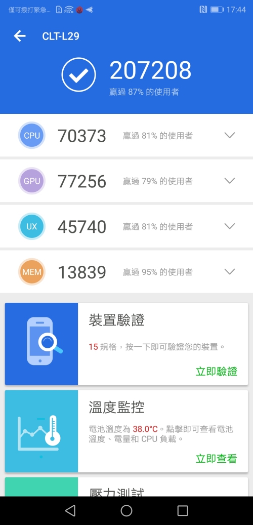 在跑分的部份,以下提供各種結果(使用 P20 Pro 所測試)給大家參考: