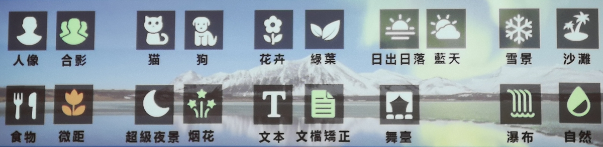 辨識功能不僅比先前更多種類,阿湯在實測後,辨識能力也更加精準,會在相機介面下顯示目前辨識到的場景。