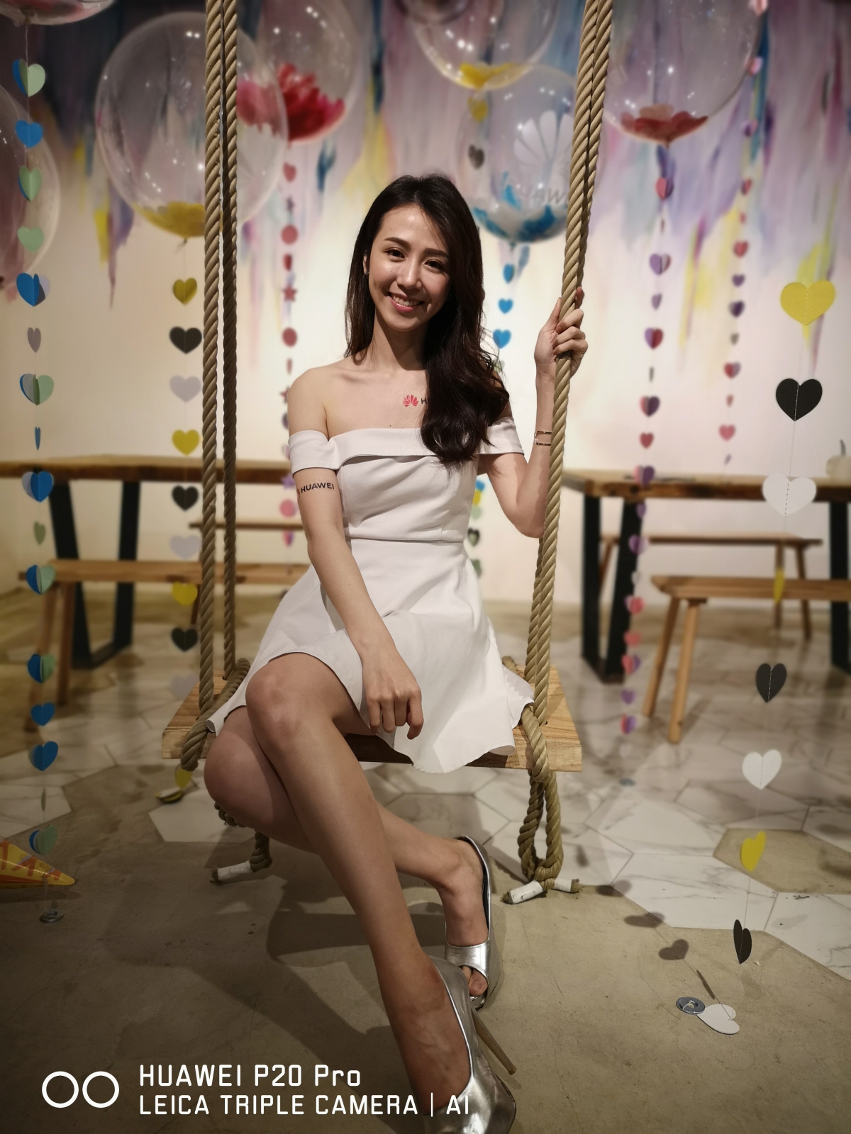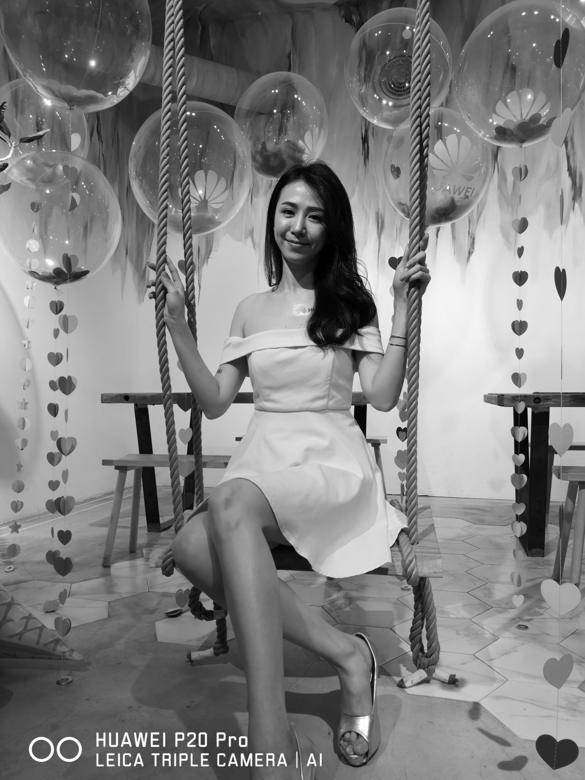在實機體驗會當天,阿湯也借用了模特兒進行人像拍攝,雖然她邊搖著盪秋千(微晃),在室內光源下還是能抓拍到靜止的畫面。