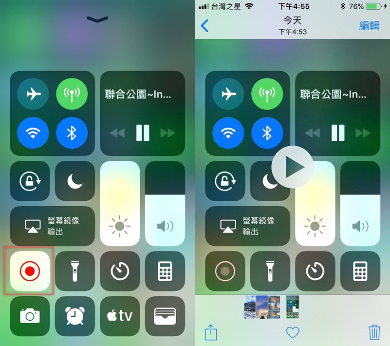 首先你要先確定你的手機已經升級到 iOS 11 版本,才可以使用內建的螢幕錄影功能,然後播放你想要設定的音樂(可以使用