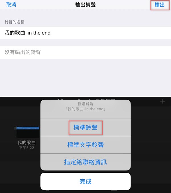 編輯後選擇輸出鈴聲,再看要當作標準鈴聲或其他音效,試試看。