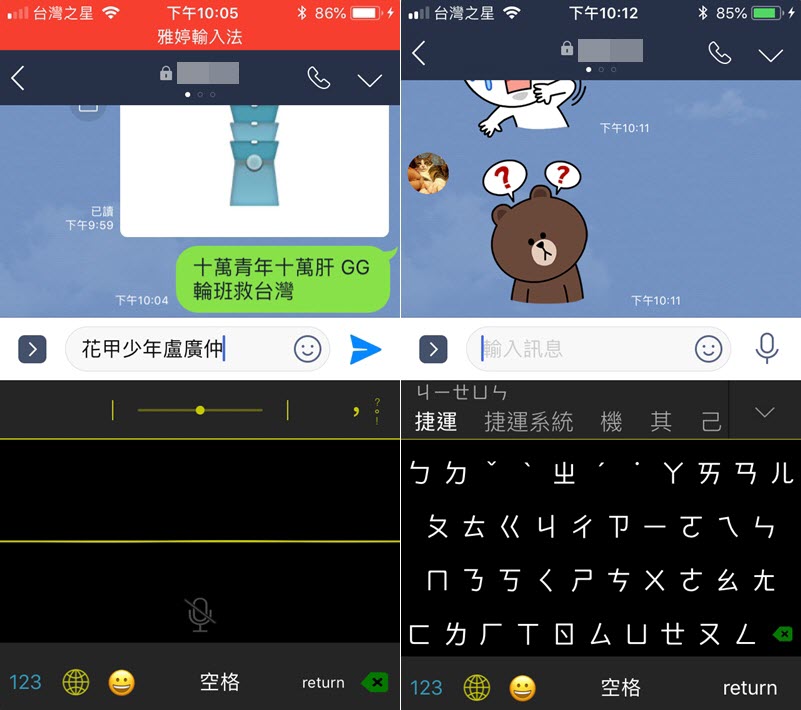其實阿湯暫時想不出更有辨識度的鄉民語,還逛了一下 PTT,就再試試 APP 範例的「十萬青年十萬肝,GG 輪班救台灣」,以及「花甲少年盧廣仲」都沒有錯字,不過切換到鍵盤輸入就沒那麼敏銳,除了非常普遍的詞像是「捷運」,其他會跑出來的相關詞就比較少,有待改進。