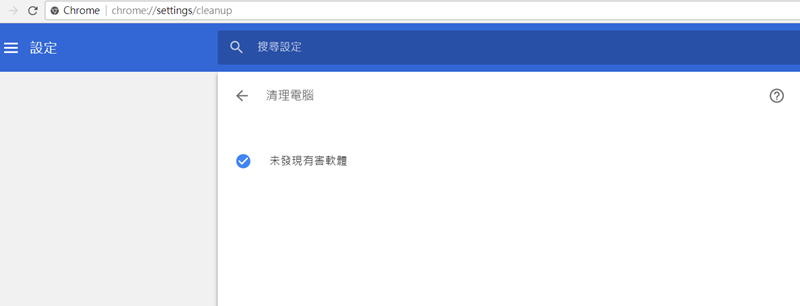 打開 Chrome,複製下面這段貼到你的網址列:chrome://settings/cleanup然後會進入下面這個頁面,點尋找。
