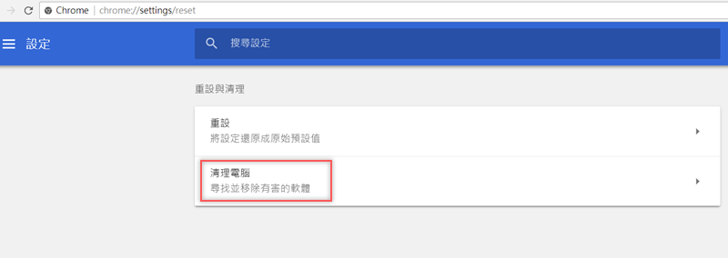 chrome://settings/cleanup然後會進入下面這個頁面,點尋找。