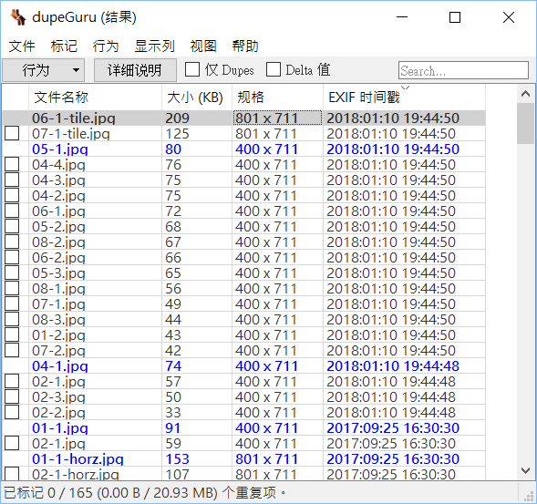 以照片來講使用 EXIF 資訊比較適合比對拍攝及修改時間,綜合來講,雖然跟「AllDup」比起來多了跨平台的優勢,但阿湯覺得不太好設定,簡體中文介面也不夠友善,大家試用看看再一起分享吧。