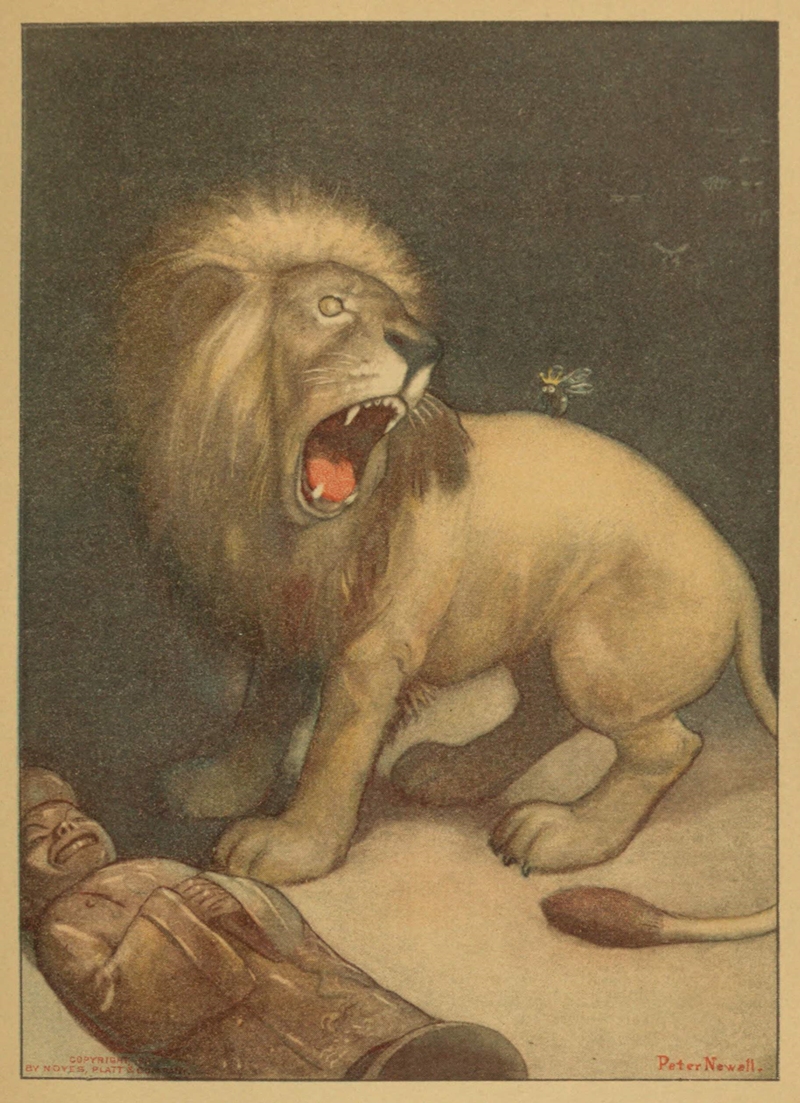 除了單色外也有彩色版的,像這張獅子就是利用三原色印刷,完成時間約在 1862-1924 年,由波士頓的出版商提供。