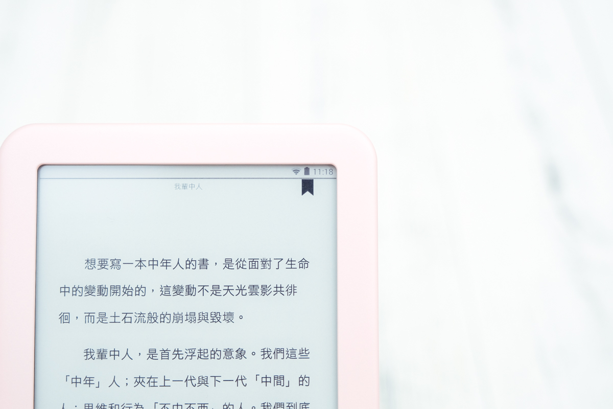 再來看看 mooInk 電子書閱讀器,面板由於不是使用背光技術來顯示,所以非常的乾淨,看起來真的很像就是在看紙本書籍的感覺。