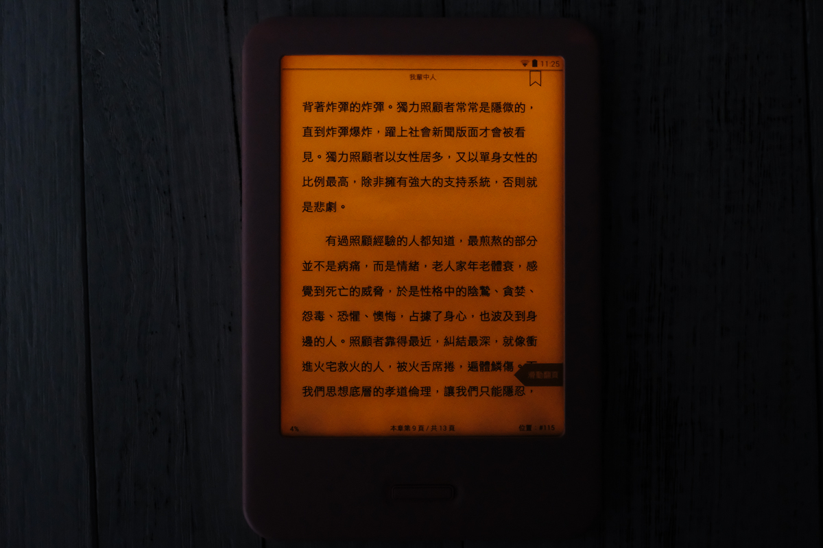 不過為了解決昏暗場景下看書的問題,內建有光源顯示調整,自身還是可以發出光讓你在昏暗場景下閱讀的,而這光線不像一般背光那麼的刺眼,相對來說還是非常舒適的,但阿湯還是會強烈的建議你開燈看書啊。
