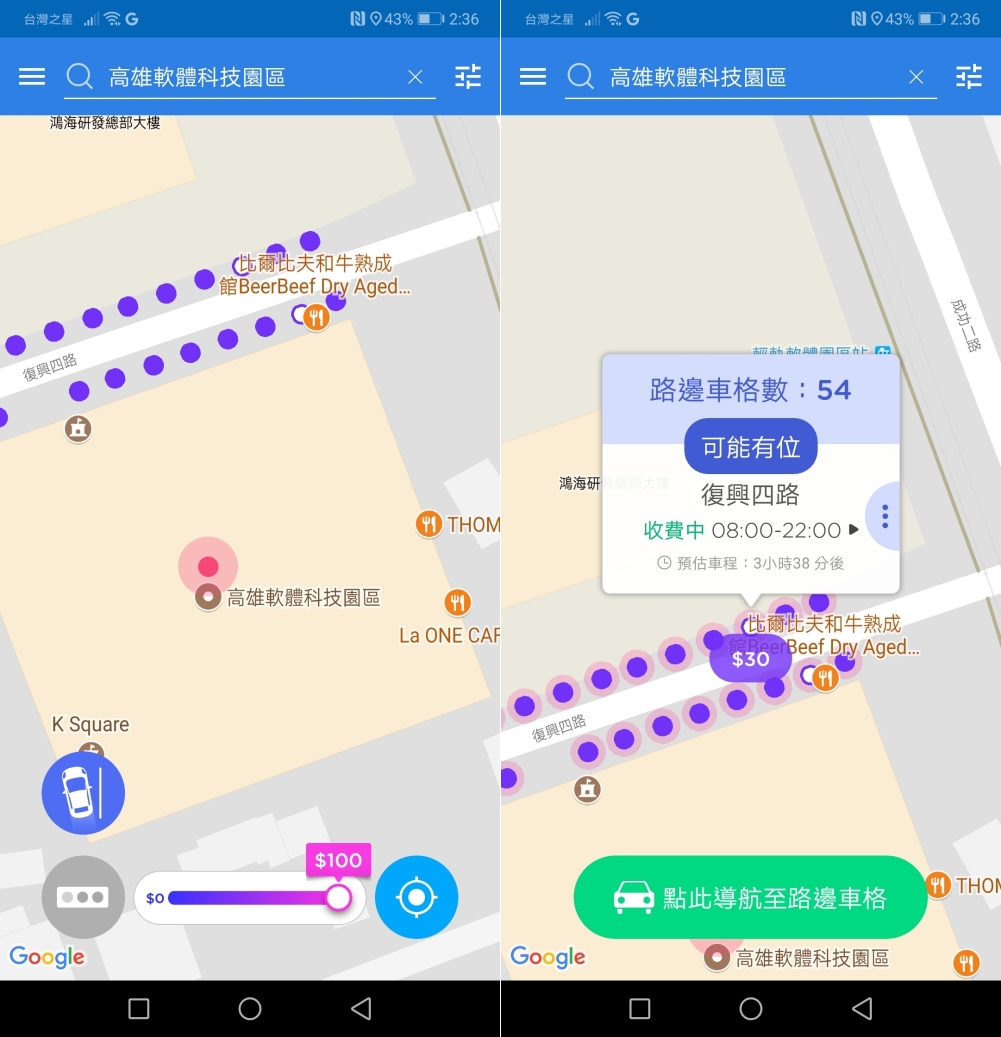哦對了,點擊要去的停車區後,就可以按導航直接前往,是直接串 Google Maps 的。