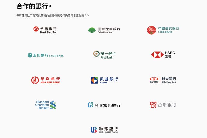 目前支援 Apple Pay 「金融卡」的銀行有: