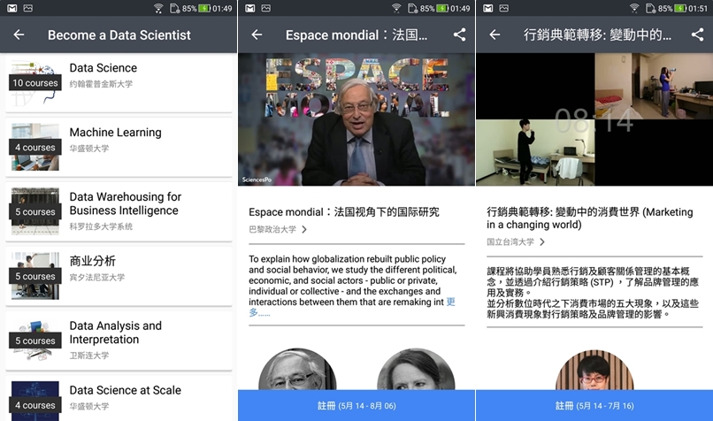 大家應該很好奇劍橋、耶魯等知名大學教的內容吧,這款 APP 提供超過 115 所國外頂級大學和教育機構,25 個專業領域包括藝術與人文、科技、醫藥、平面設計等多樣化課程,都可以透過 APP 去學習。