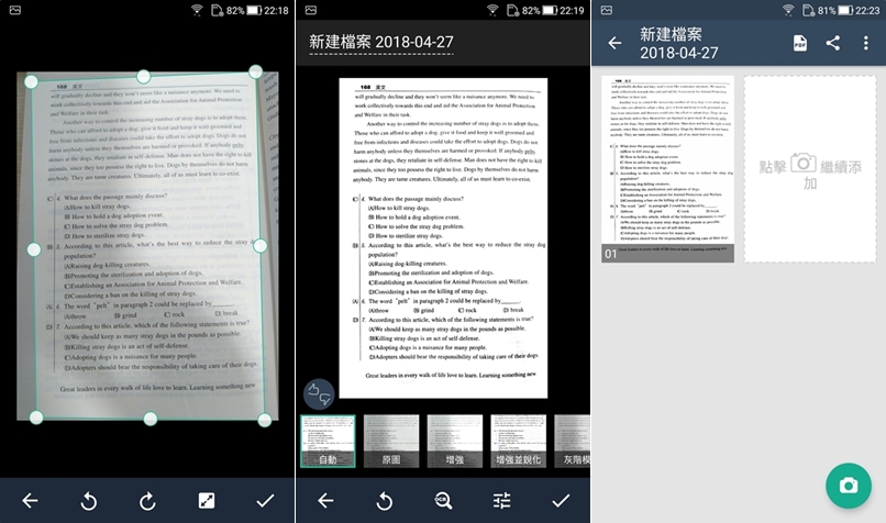 掃描類的 APP 是手機裡一定要具備的,上班族可以用來掃名片、證件,對學生而且將課本、筆記掃描起來存在手機比拿著厚厚的書本方便,這款 APP 十分好用,阿湯也作過