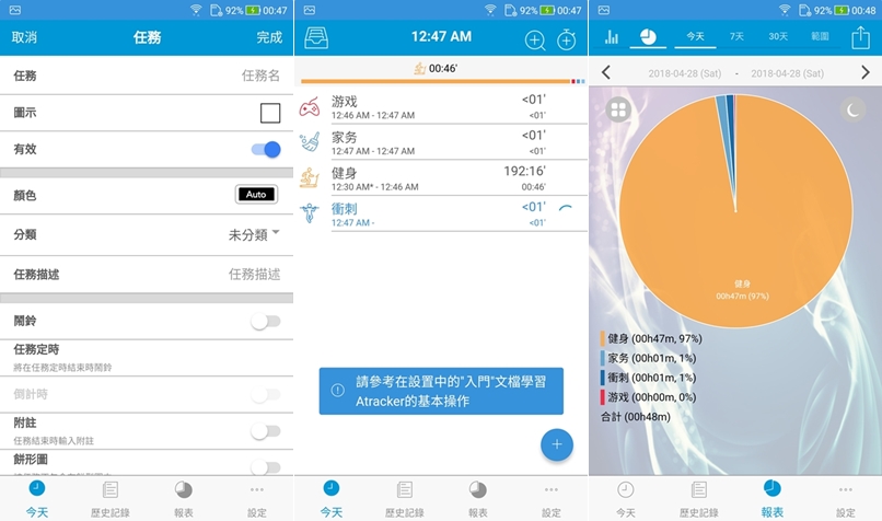 可自行編輯或新增任務,有蠻多可愛的小圖示可以選擇,並提供報表整合,可切換每天或 7 天、30 天、自訂範圍來檢查成效,阿湯覺得很適合當作考前複習及衝刺計畫的輔助工具。