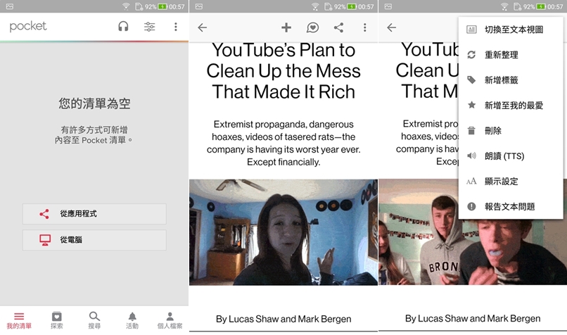 看過的文章會自動封存及播放,開啟朗讀功能的話要注意發音,因為預設是中文所以不適合讀英文文章,記得更改語言並選個喜歡的聲音,再調整音調及語速,就能當作課外閱讀、資料搜集的好幫手了。