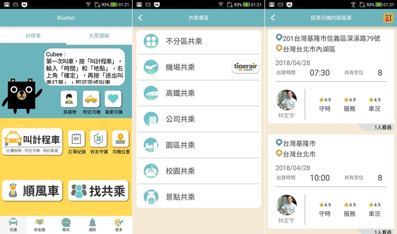 叫車 APP 懶人包,經過了一年多的時間功能與介面都做了改善,裡面有學生比較會用到的共乘及順風車功能,可從列表找到符合的時間、目的地再點進去看聯絡詳情。