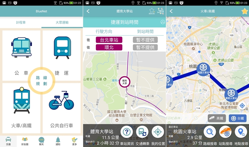 除了計程車,也有大眾運輸的資料庫可一起參考,像捷運、台鐵、高鐵都有提供相關的乘車及轉乘等資訊,結合手機定位就會更方便搜尋,如果手邊有慣用的大眾運輸 APP 可以比較看看。