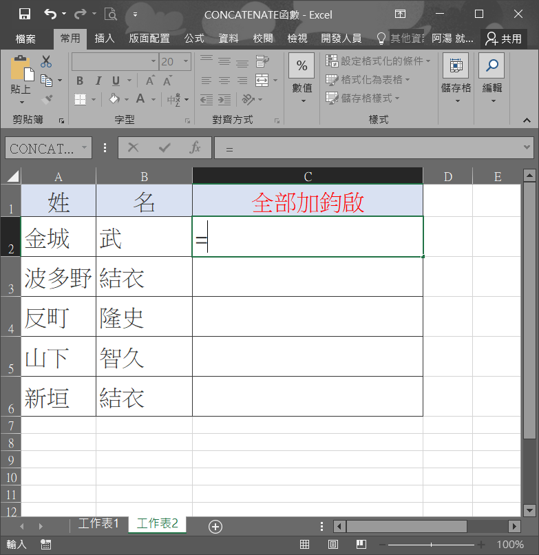 如何運用函數「CONCATENATE」合併儲存格?
