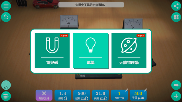 除了電學,也新增了電與磁、天體物理學的項目,目前是測試版本。