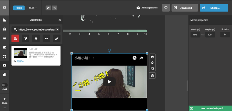 圖片和影片也可以輕鬆置入,輸入連結就會幫你讀取內容,再依需求調整即可。