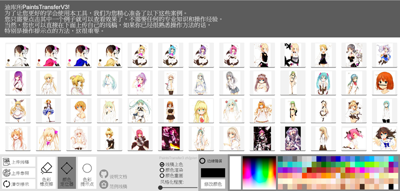 網站有提供範例可選擇練習,也可以上傳自己的線稿,像阿湯沒什麼繪畫經驗的當然是先用他們的來做。