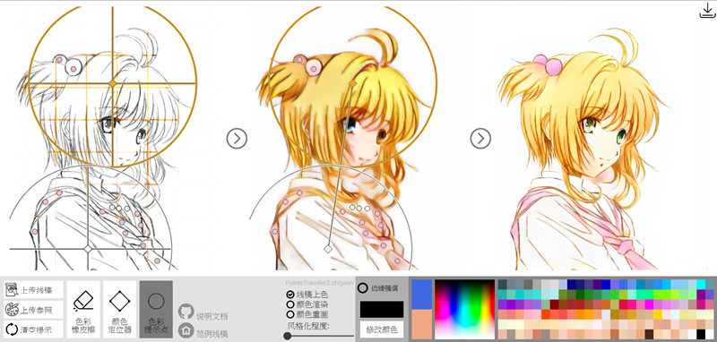 FireAlpaca,如果是要專門針對「上色」這件事情來練習,可以利用「PaintStransfer」這個網站,提供了不少漫畫範例可從簡單的線稿開始,利用滑鼠拖拉設定顏色範圍,AI 就會幫你自動辨識完成,還蠻有趣的,來畫畫看。
