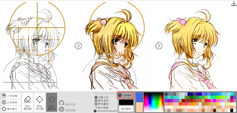 再來看另外一個案例,這個大家應該比較認識,庫洛魔法使的小櫻,示範稿只用了兩個顏色定位器,滑鼠調整範圍後,再用粉紅色點在要加強上色的地方。