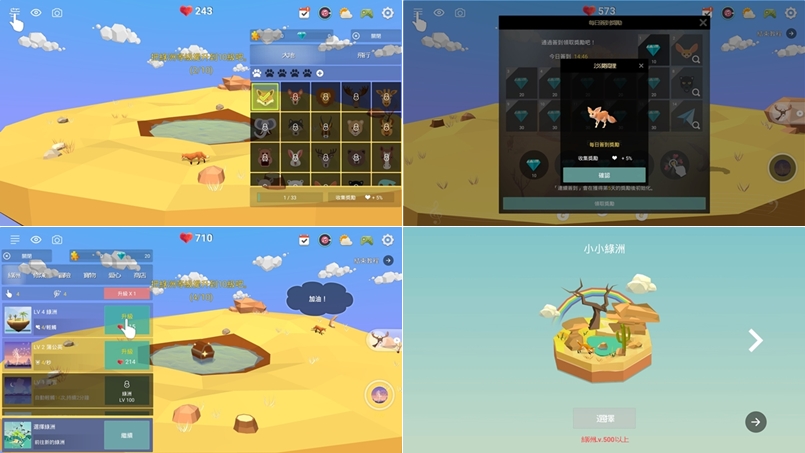 治癒人心的空島育成遊戲,建議一定要開音樂,好聽又舒適,遊戲方式是一直輕點螢幕來生成愛心,再透過愛心去開拓地形,一開始會送你一隻狐狸,牠會繞著島一直走,有時候會跟你講話或發出提示,可以放大使用不同角度查看。
