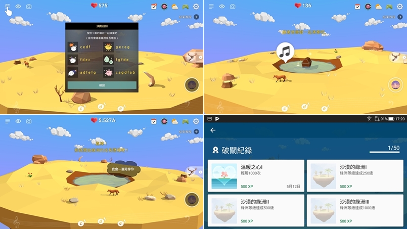 可以點底下的音符發出聲音,並透過演奏改變天氣與時間,下雨或下雪、傍晚或黎明,從溫暖的畫面中悠閒的累積經驗,升級島嶼後也會出現新的樹木和動物,阿湯還蠻喜歡這款的。