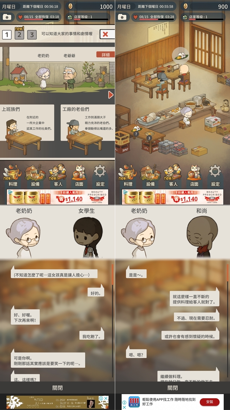 每個來店的客人都有不同的職業和心事,除了準備食物供應,老婆婆也會傾聽來客的心事,以對話的方式帶動劇情,有種深夜食堂的感覺,聽說結局十分感人啊,阿湯會慢慢玩下去。