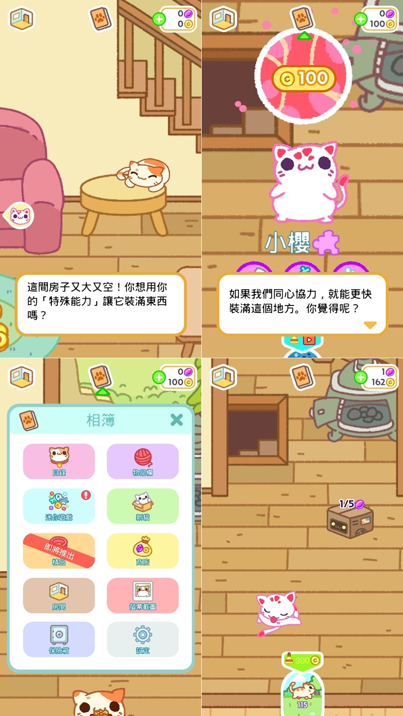 遊戲進行中會有相同能力的新朋友出現,一起到處尋寶,除了收藏新貓也有內建迷你遊戲可賺錢,比較容易卡關的是要稍微花觀察力去找保險箱密碼,找不到的話可搜尋網路上的提示。
