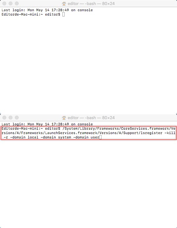 /System/Library/Frameworks/CoreServices.framework/Versions/A/Frameworks/LaunchServices.framework/Versions/A/Support/lsregister -kill -r -domain local -domain system -domain user