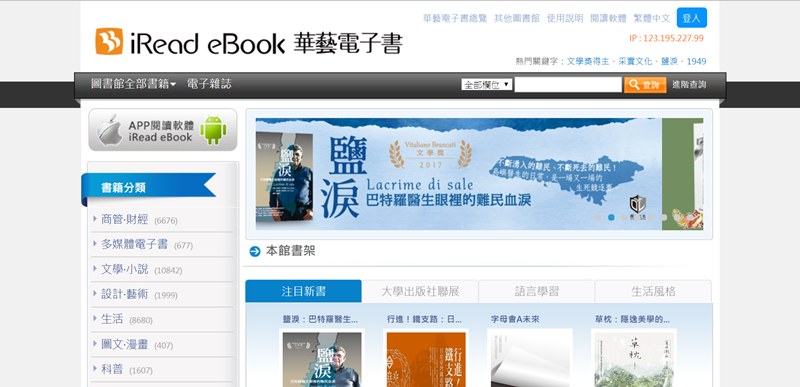 這個網站是一個大學生推薦給阿湯的,學術類的書占最大宗,還有一些多媒體有聲書、政府出版品,可以線上試閱,有的書可以「試閱」的部分不只有前一兩章,阿湯就挖到一本工商類的書整本可試閱,免費但下載需註冊,且必須是大專院校或部分有合作的公司行號在同個 IP 位址下才能註冊會員,所以阿湯也進不去,大家可以試試看搞不好你公司可以用也不知道。