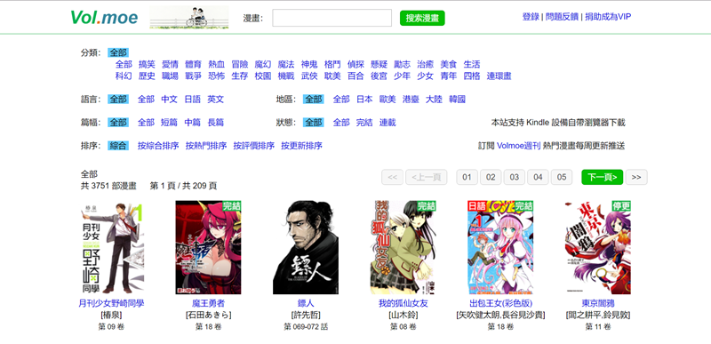 來個專屬於漫畫的網站,內容都是網友上傳的,更新維護得不錯,目前有 3754 本各類漫畫,有已完結的也有連載中的,要登入才能下載,有普通會員直接點擊自動下載的作品,也有些會限制 VIP 等級,就看大家需求了,但下載的時候網路會很頓,要注意一下。