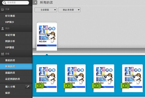 在頁面按一下右鍵也會顯示上方的工具列,左上角還有一個追蹤書籍,可以讓你針對一些喜愛的雜誌或是周刊進行追蹤,未來只要有新的一期上架,就能立刻知道。
