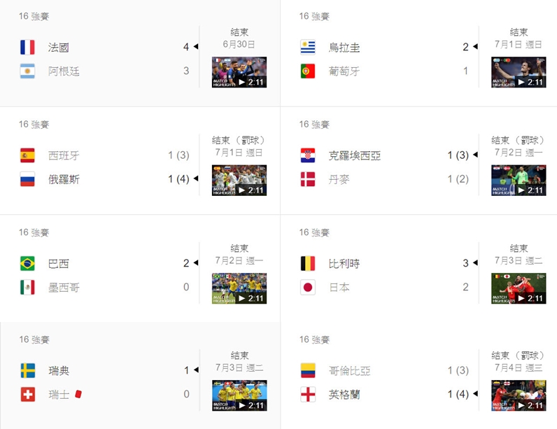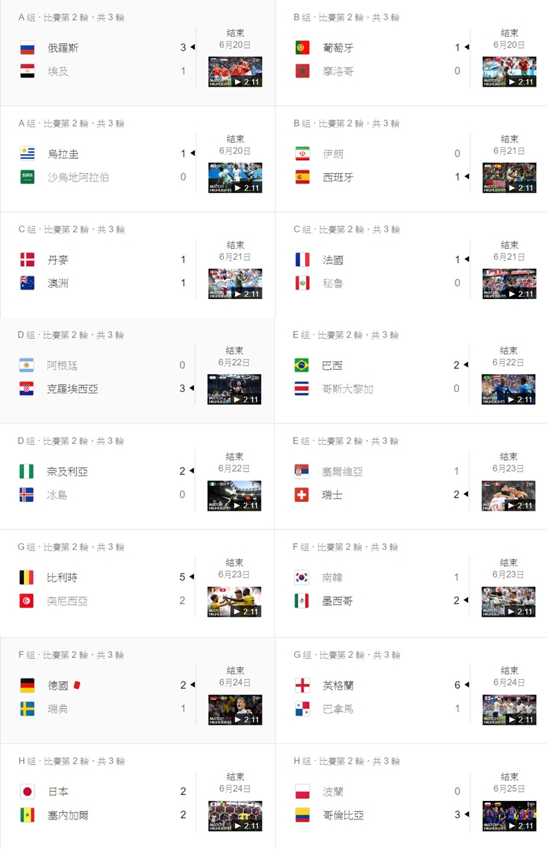 2018 世足賽賽程表:
