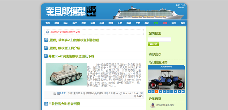 最後三個都是中國的社群網站,先介紹紙藝網,一看就知道除了紙模也包括了各種手工藝品,內容豐富但品質參差不齊,有興趣的就當論壇來看補充知識,確定喜歡再考慮下載。