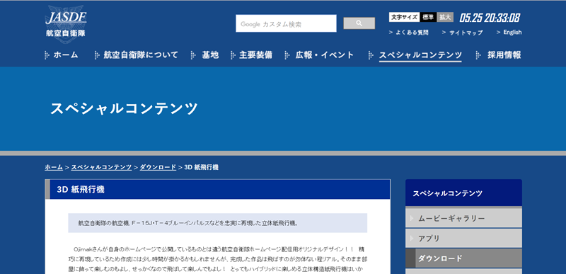 會不會紙模型就是從軍事類發展的?這類網站真的佔大多數啊,這是航空自衛隊底下的特殊內容,各式飛機模型下載,每個人都可以下載 PDF 圖檔跟詳細的步驟解說。