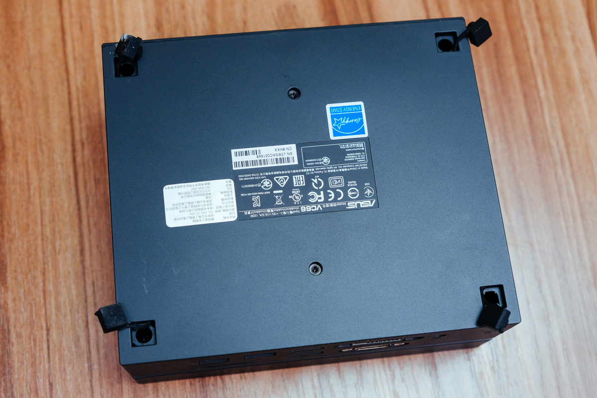 如果你跟我一樣是 VivoMini PC 的話,就順便參考看看我是怎麼拆的,這台迷你電腦的螺絲就藏在底座四個橡膠墊內,稍微摳一下就可以了,然後將螺絲拆卸下來。