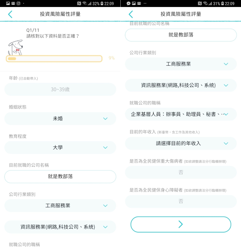 投資風險屬性評量問卷會包括你的年齡、基本職業資訊及收入等。